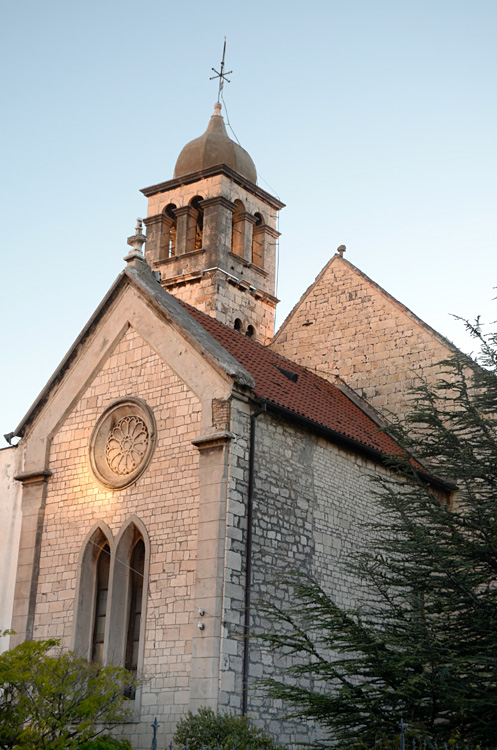 Františkánský klášter se nachází na okraji jihovýchodní části historického centra města a byl postaven ve 2. polovině 14. století. Jedná se o jednoduchou prostornou gotickou stavbu bez architektonických dekorativních prvků. V 15. století pak byla ke kostelu přistavěna kaple sv. Kříže a současně byl zrekonstruován presbytář. Na průčelí hlavního chrámového vstupu můžeme vidět fragmenty lunetových gotických fresek ze 14. století. V roce 1762 byly do kaple sv. Kříže instalovány varhany, které postavil slavný varhanář Petar Nakič.